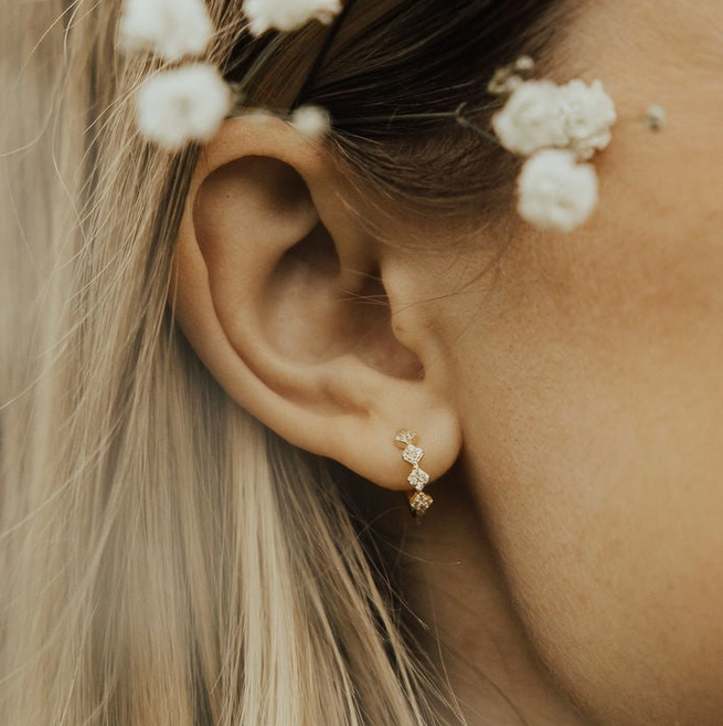 These Alice Diamond Hoops are the perfect finishing touch to any look. Crafted in luminous gold vermeil, they’re hypoallergenic, tarnish-resistant, and gentle on sensitive ears. Their dainty 10mm size makes them ideal for everyday wear—whether you style them solo for a subtle shimmer or stack them for a touch of extra sparkle. Outer diameter: 12mm.