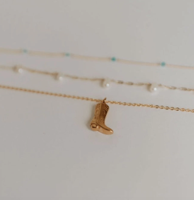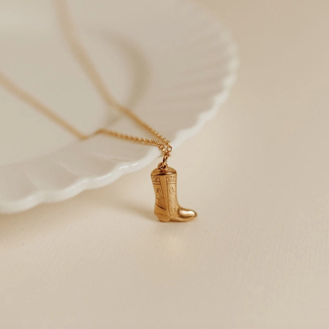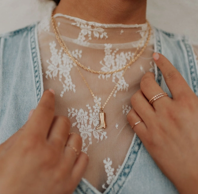 Y’all are gonna love this one—the Dolly Boot Necklace is the sweetest nod to your inner cowgirl. Featuring a dainty gold-covered chain and a tiny stainless steel boot charm, it’s the perfect mix of fun and feminine. Wear it solo for a subtle Western touch or layer it up for a little extra sparkle. Chain measures 16" with an extender to 18".
