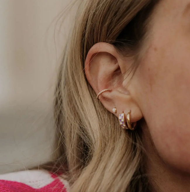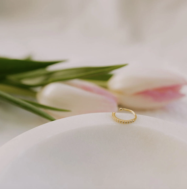 The Jane Diamond Band Ear Cuff is the perfect way to add a touch of sparkle and personality—no piercing required! Crafted in gold-plated sterling silver, this hypoallergenic cuff is both durable and malleable, so it comfortably conforms to any ear shape. Effortless style with zero commitment.