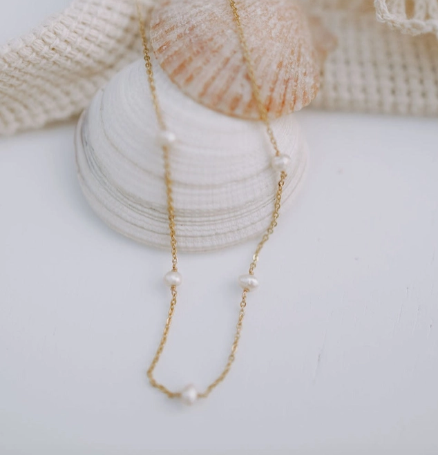 The Malibu Pearl Necklace is a delicate, timeless piece crafted from hypoallergenic gold vermeil and genuine freshwater pearls. Perfect for layering or wearing alone, it adds a subtle touch of elegance to any outfit. The chain measures 14.5" with an extender to 16.5" for a customizable fit.