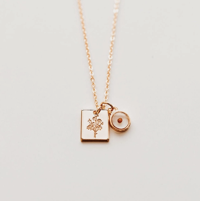 The Meadow Necklace is a delicate symbol of new beginnings, growth, and joy. Featuring a tiny mustard seed, it’s a reminder that even the smallest things can create meaningful change—and that faith, like a seed, grows with care. Crafted in 18k gold plating, this necklace hangs from an 18" chain with an extender to 20" for a perfect, layered fit.