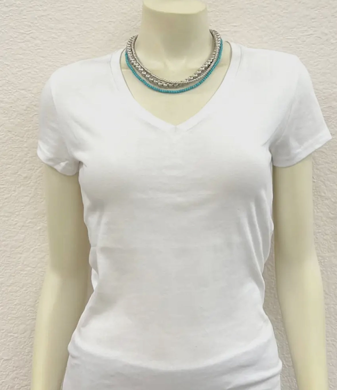 Handmade 3-strand Silver Navajo Bead, Synthetic Turquoise Necklace