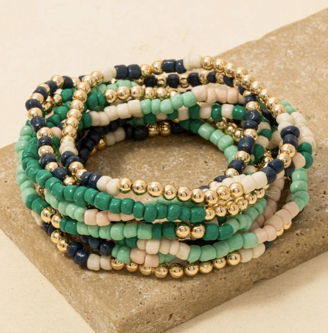Mint & Blue Mixed Seed Bead Bracelet Set