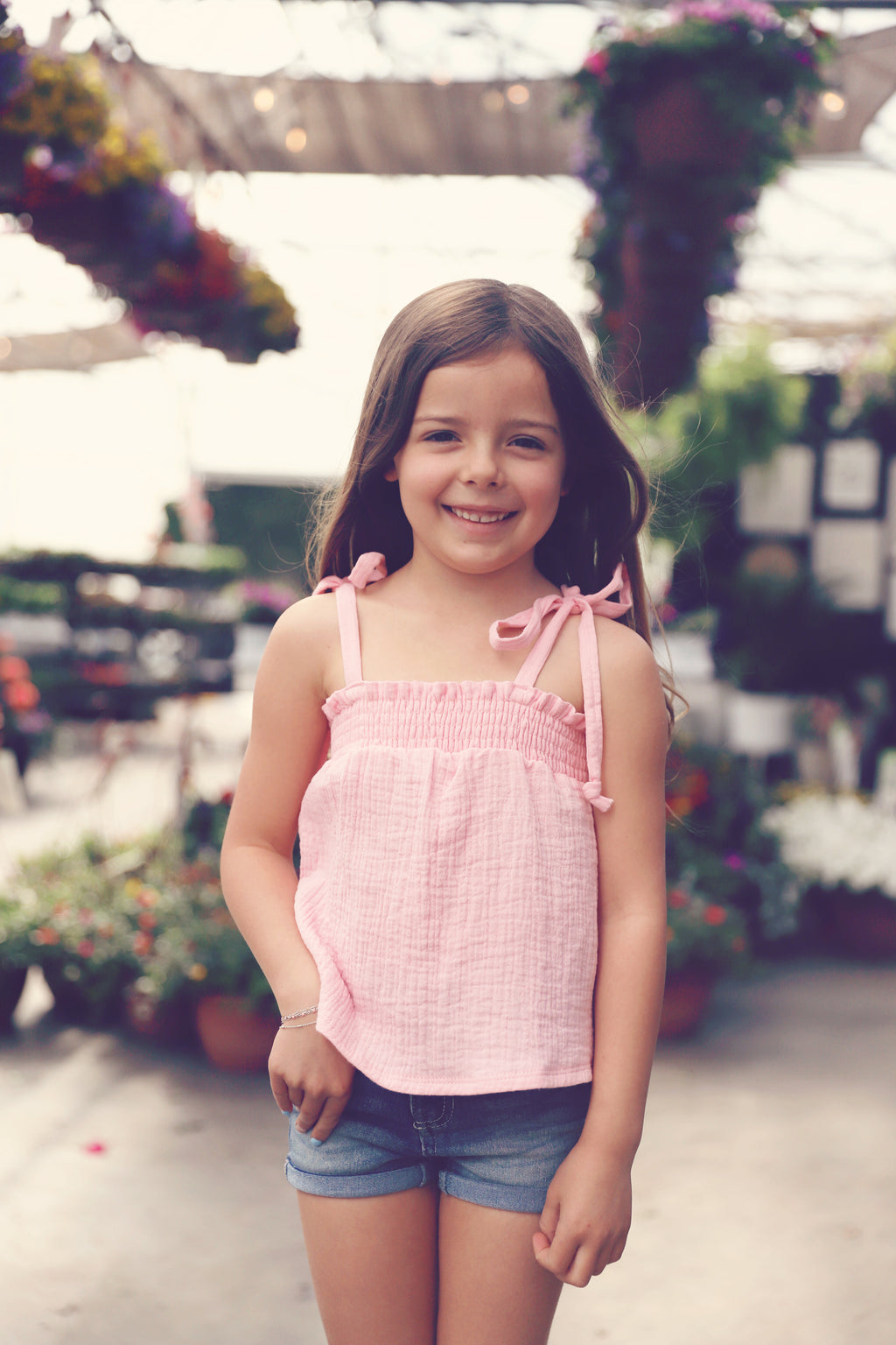 Girls Blush Gauze Tie Shoulder Cami