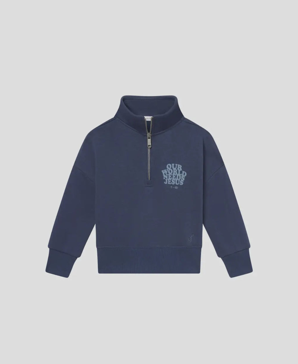 Youth Blue World Needs Jesus Half Zip Sweatshirt