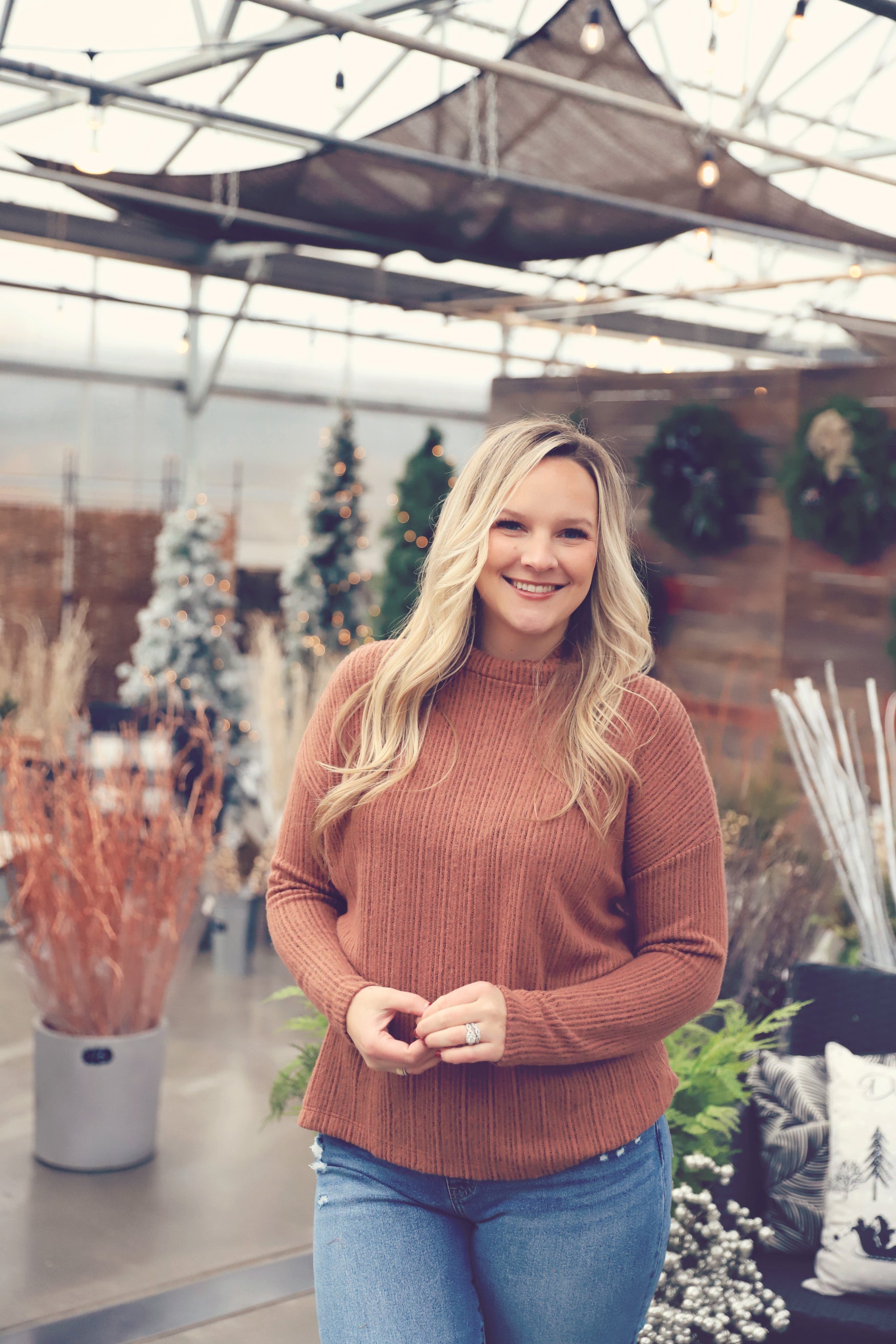 The Rust Ribbed Turtleneck Sweater is warm, classic, and effortlessly chic. With its soft ribbed knit, relaxed drop shoulders, and cozy turtleneck, it’s the perfect blend of comfort and style. Pair it with denim or a midi skirt for a timeless fall look.